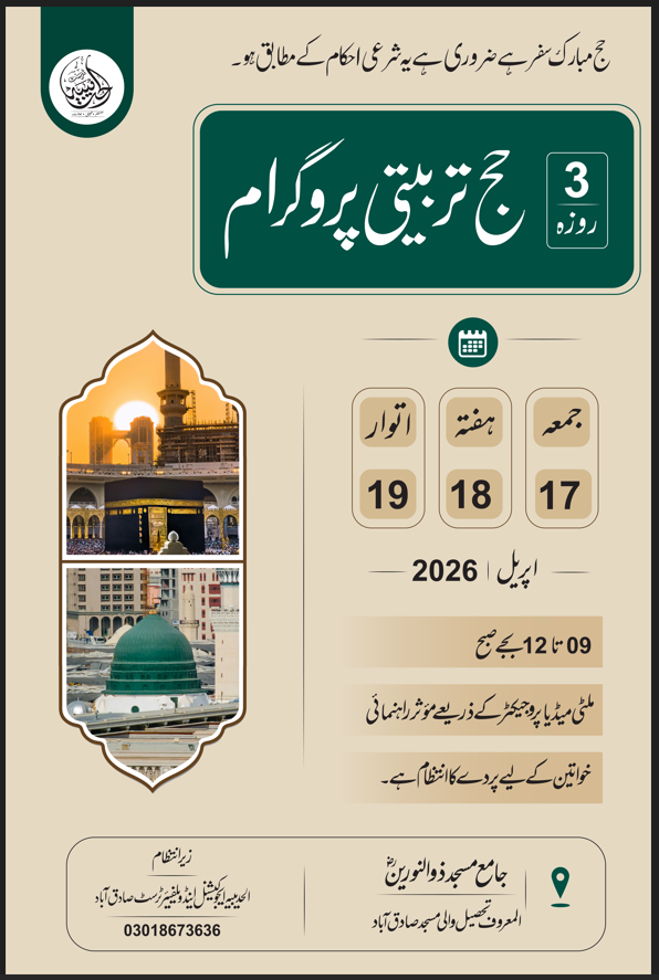 Hajj Training Program 2026 Post author:umar123 Post published:April 11, 2026 Post category:Uncategorized Post comments:0 Comments You Might Also Like April 16, 2026 نماز کے انتظار میں گزرنے والا وقت April 12, 2026 دوچیزیں خوب مانگئے April 13, 2026 Leave a Reply Cancel replyCommentEnter your name or username to comment Enter your email address to comment Enter your website URL (optional) Save my name, email, and website in this browser for the next time I comment.