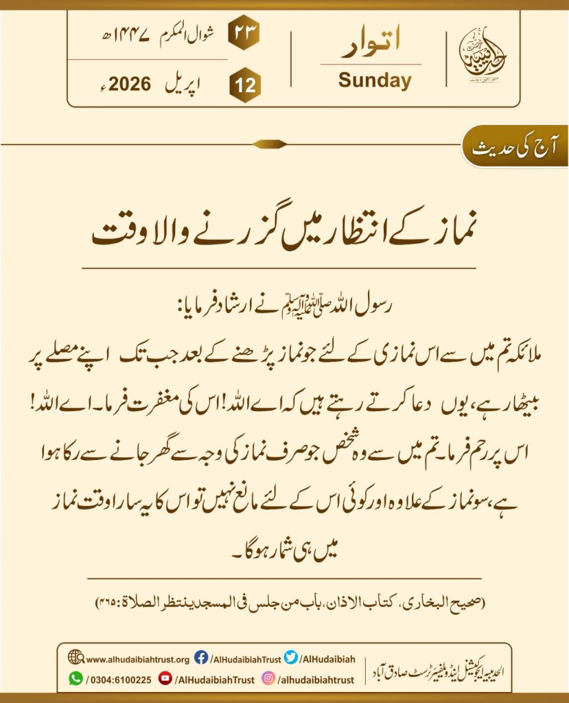 نماز کے انتظار میں گزرنے والا وقت Post author:umar123 Post published:April 12, 2026 Post category:Uncategorized Post comments:0 Comments You Might Also Like Hello world! July 6, 2022 April 16, 2026 نماز میں صفیں سیدھی رکھنے کی فضیلت April 11, 2026 Leave a Reply Cancel replyCommentEnter your name or username to comment Enter your email address to comment Enter your website URL (optional) Save my name, email, and website in this browser for the next time I comment.