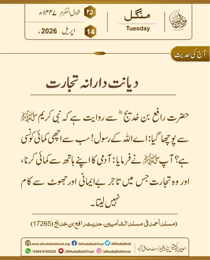 دیانت دارانہ تجارت Post author:umar123 Post published:April 14, 2026 Post category:Uncategorized Post comments:0 Comments You Might Also Like حلال وحرام سے لاپرواہی April 9, 2026 April 16, 2026 ناراضگی چھوڑیے صلح کیجئے April 10, 2026 Leave a Reply Cancel replyCommentEnter your name or username to comment Enter your email address to comment Enter your website URL (optional) Save my name, email, and website in this browser for the next time I comment.